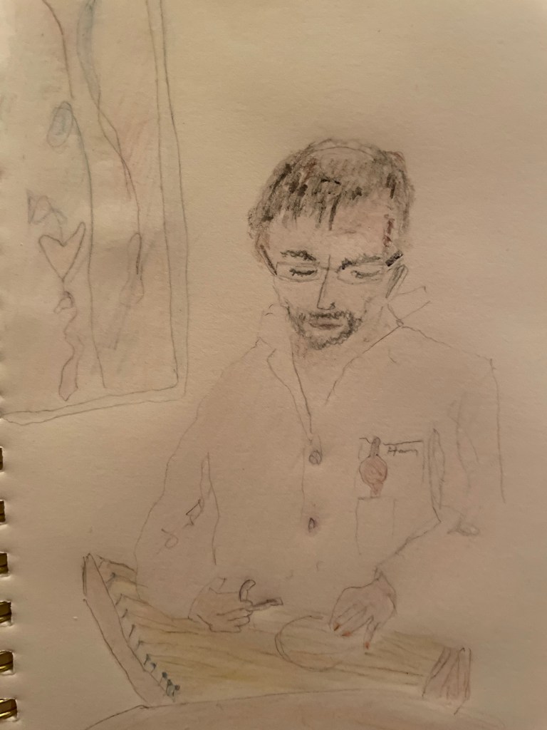 Despite these finer points of playing, the kantele’s apparent simplicity, the ease with which one can play it, means that when Wolfgang plays for and with someone at the hospice, there are few mysteries as to how the sound is produced. That clarity is perhaps especially important because patients in a hospice often face uncertainty – there are many things that are mysterious, and concerning. So, if they are able to see what Wolfgang is doing, they have good access to the processes by which the sounds are produced. And Wolfgang can be looking at them too, if that’s appropriate, without needing to distort his face to produce the sound. Because it is a string instrument, Wolfgang can also speak in between playing if appropriate – and how Wolfgang speaks with the people he visits is a huge part of his music-therapeutic craft (and a topic that we are continuing to explore).